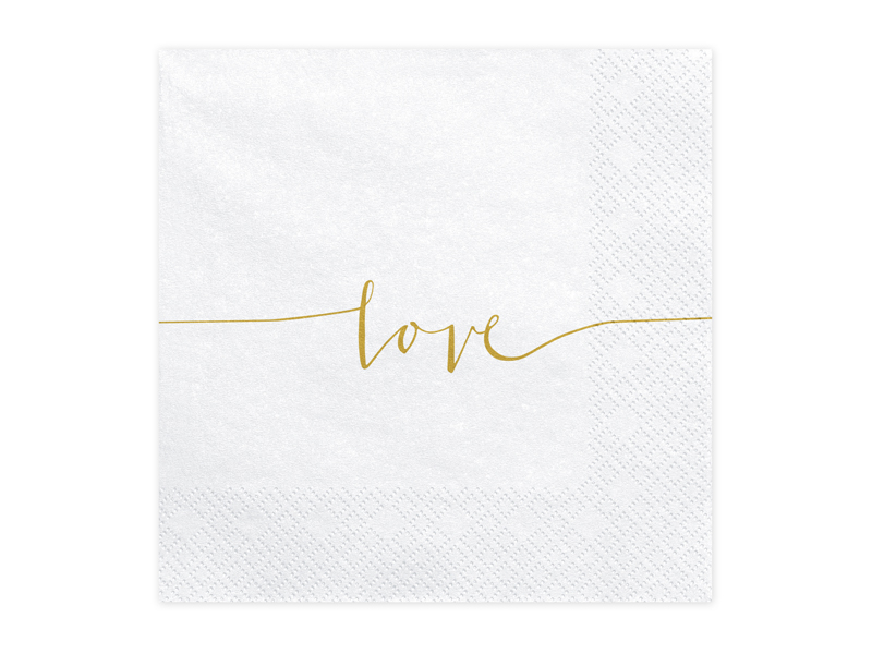 Třívrstvé papírové ubrousky v bílé barvě se zlatým potiskem LOVE.