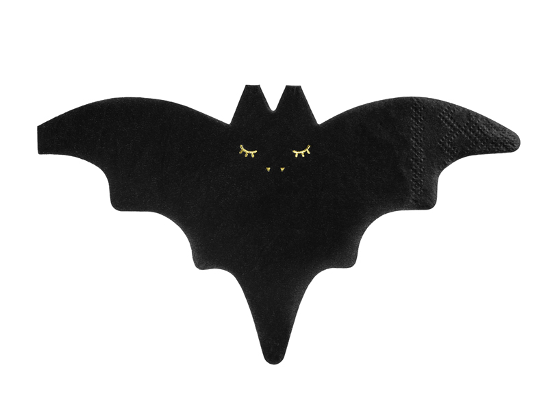 Papírové ubrousky ve tvaru netopýra v černé barvě se zlatými detaily. Vhodné pro Halloweenské oslavy.