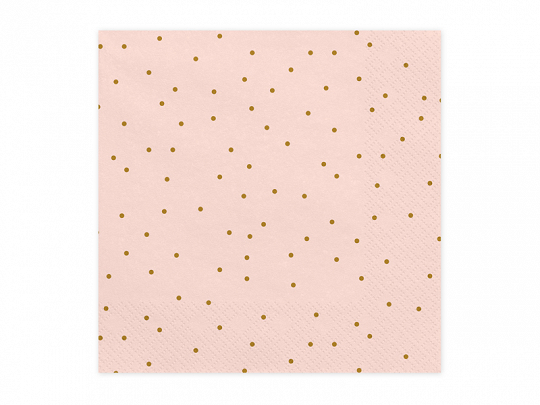 Třívrstvé papírové ubrousky v růžové barvě se zlatými tečkami.