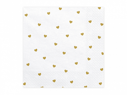 Papírové ubrousky v bílé barvě se zlatými srdíčky.