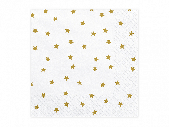Papírové ubrousky v bílé barvě se zlatými hvězdičkami.