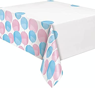 Foliový ubrus v bílé barvě s barevnými puntíky o rozměrech 137x213cm.