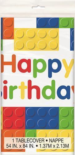 Foliový ubrus s barevným potiskem stavebnice o rozměrech 137x213cm.
