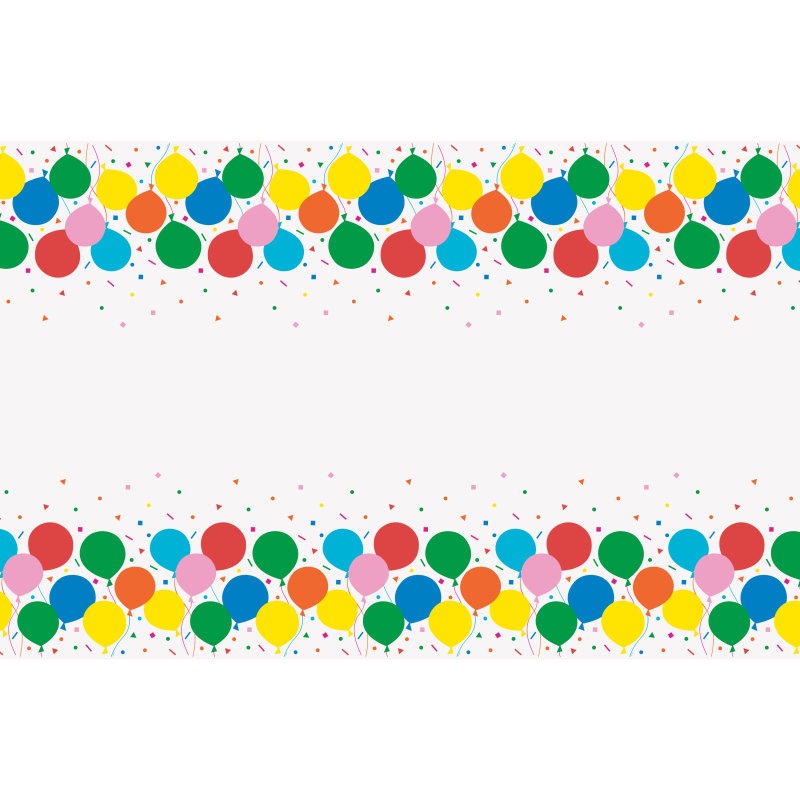 Plastový ubrus v bílé barvě s balónky o rozměrech 137x214cm.