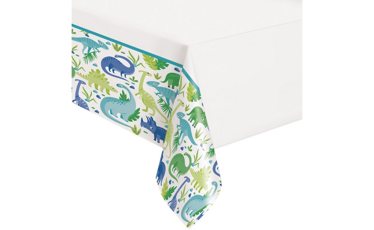 Plastový ubrus s motivem dino o rozměrech 137x214cm.