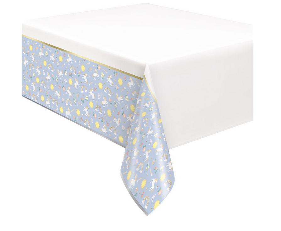 Plastový ubrus o rozměrech 137x214cm s motivem jednorožců.