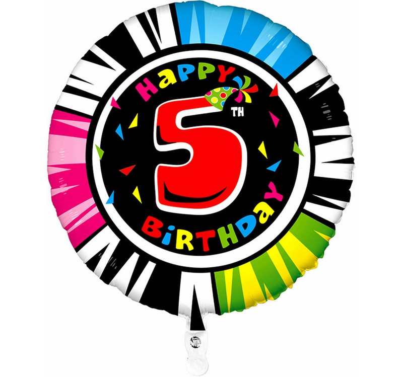 Kulaté fóliové balónky s číslicí 5 a veselými dětskými motivy jsou vhodné na oslavy narozenin.