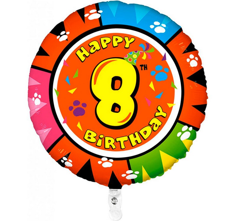 Kulaté fóliové balónky s číslicí 8 a veselými dětskými motivy jsou vhodné na oslavy narozenin.