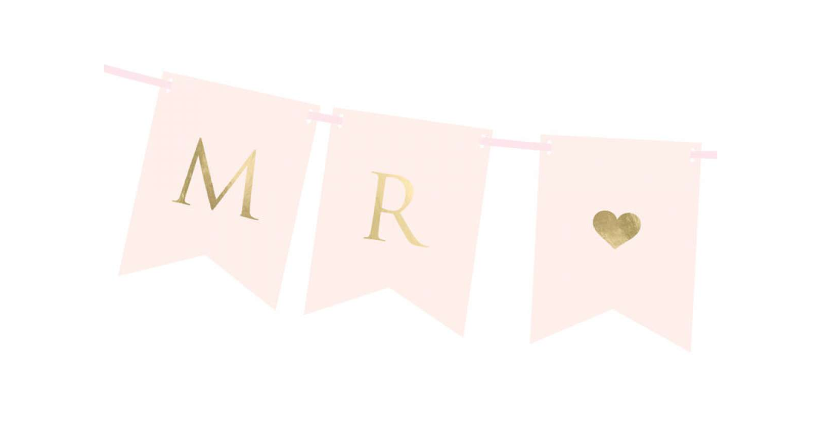 Svatební baner v růžové barvě se zlatými nápisy Mr Mrs.