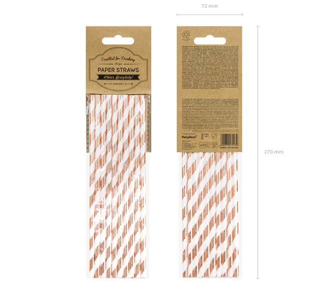 Papírová brčka s s rosegold metalickými proužky, délka cca 19.5cm.