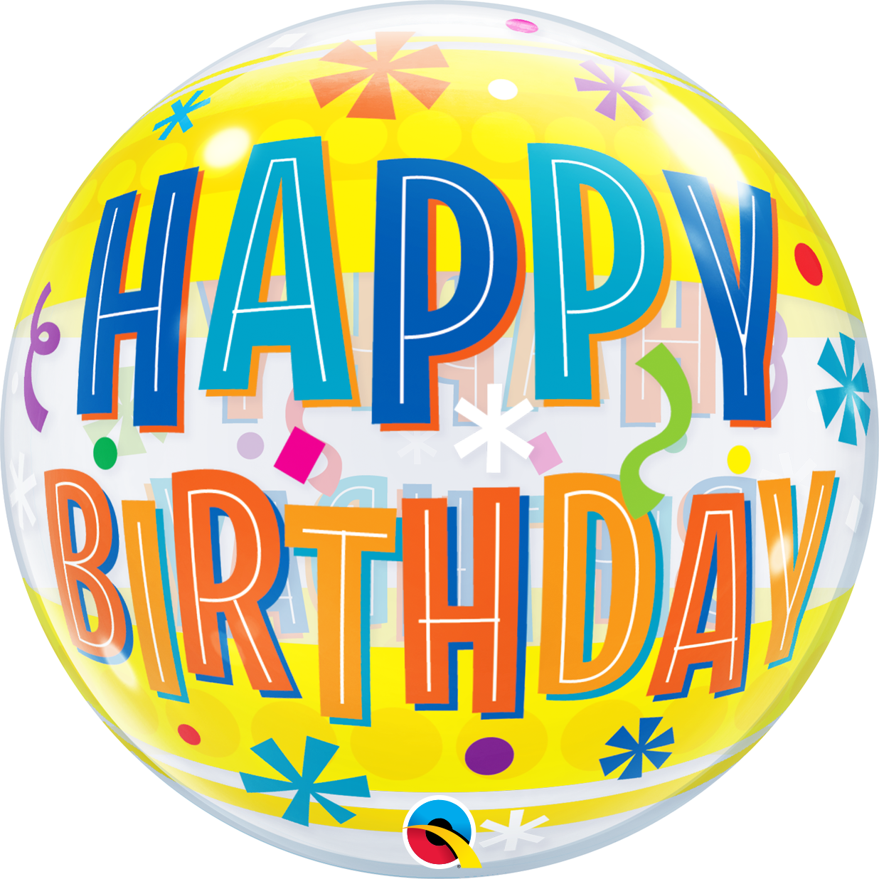 Bublina s párty narozeninovými motivy a nápisem "Všechno nejlepší".