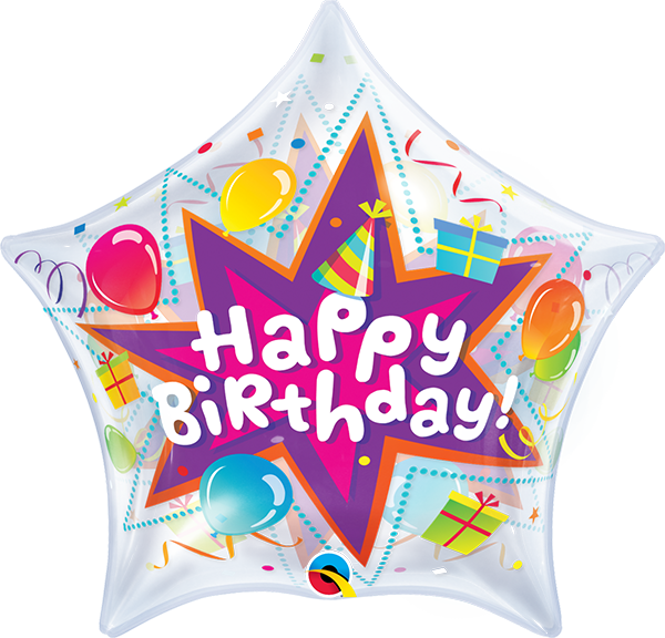 Bublina ve tvaru hvězdy s motivem narozeninové párty.