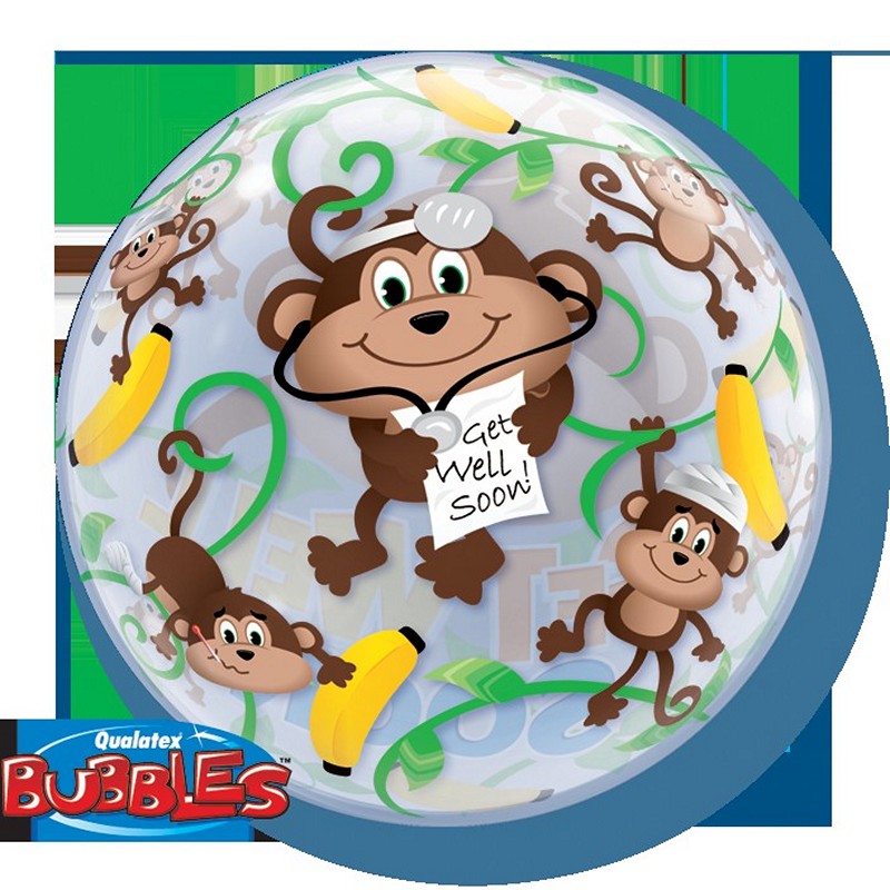 Bublina s motivy opiček s nápisem "Brzy se uzdrav".