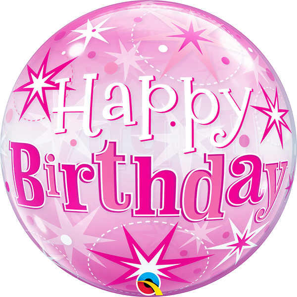 Bublina s motivy hvězd v růžové barvě s nápisem "Všechno nejlepsí".