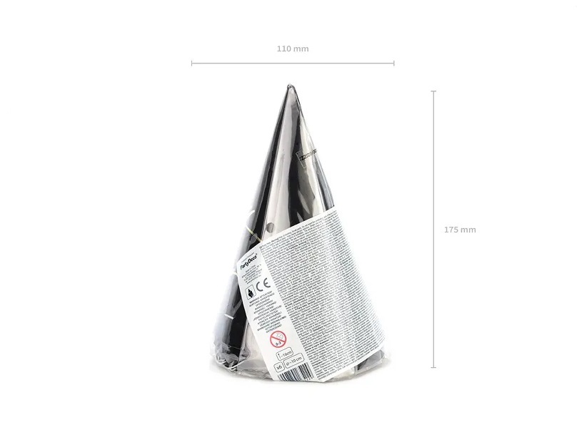 Balení šesti papírových párty čepiček v černé barvě se zlatými nápisem Happy New Year a hvězdami.