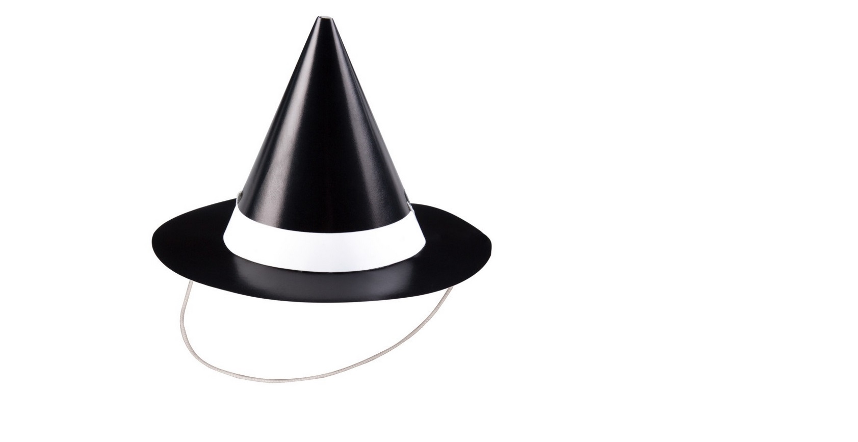 Hladké metalické papírové čepičky ve tvaru čarodějnického klobouku.