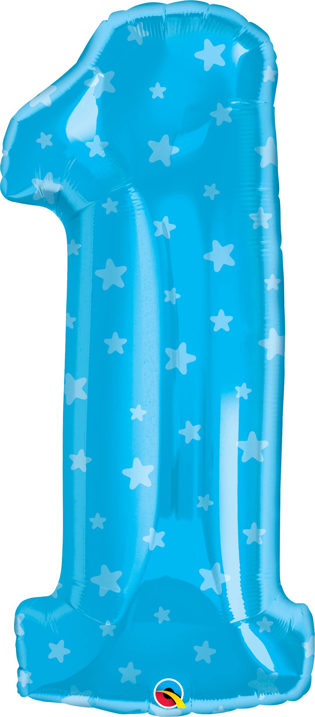 Fóliový balónek číslice 1 v modré barvě s hvězdami je velký 86cm a je vhodným doplňkem výroční, novoroční i narozeninové výzdoby.