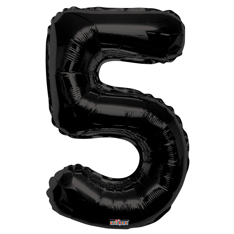 Černá číslice ve tvaru 5, výška 86cm. Vhodné pro nafukování heliem i vzduchem.