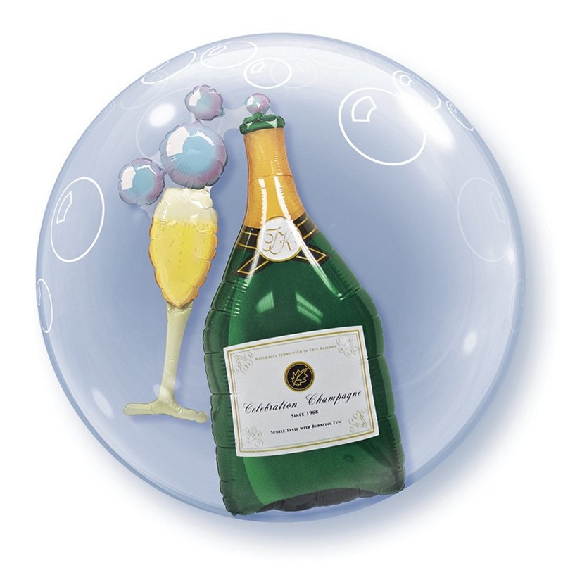 Dvojbublina s motivy láhve sektu.