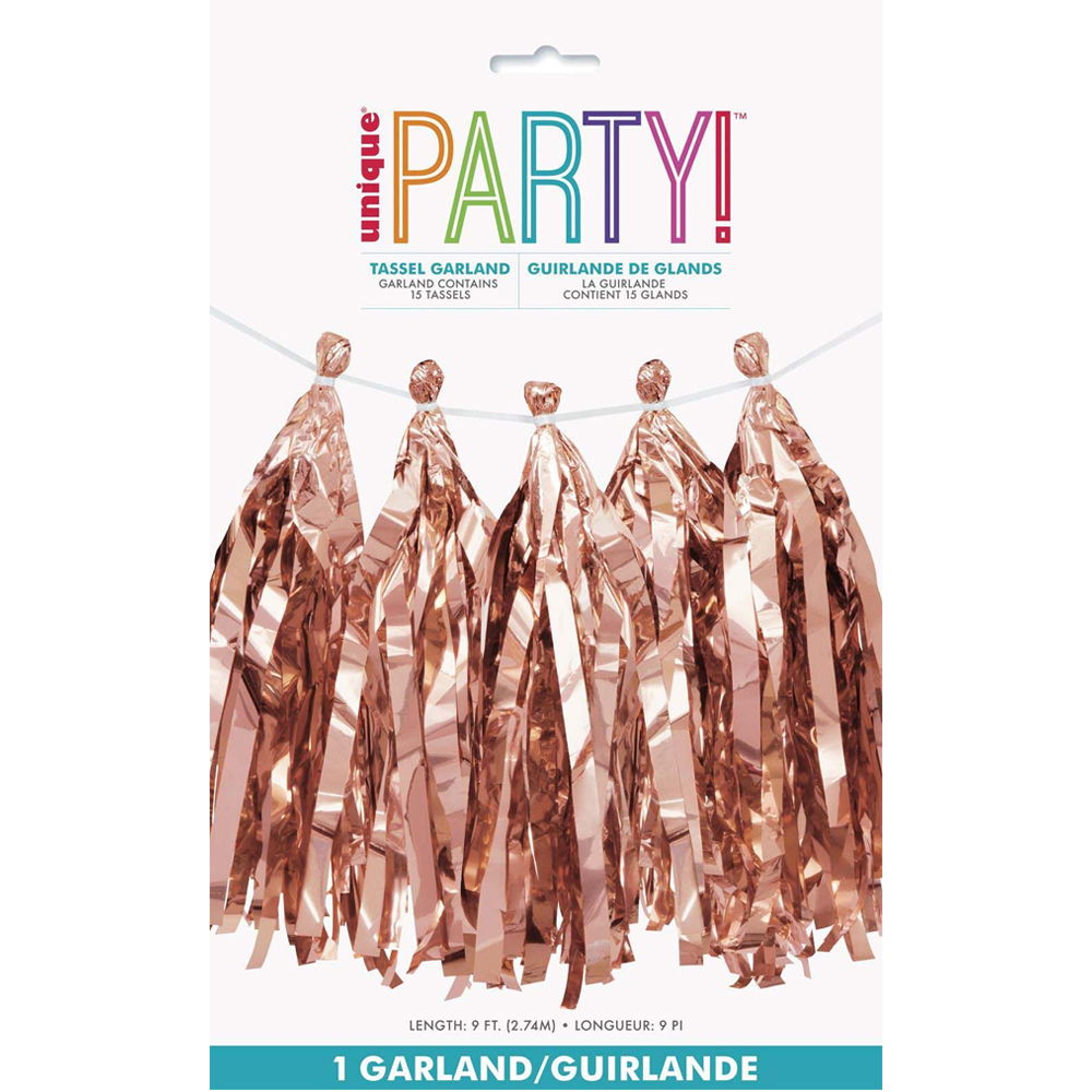 Střapcová girlanda v rosegold barvě, střapce je možné libovolně posunovat.