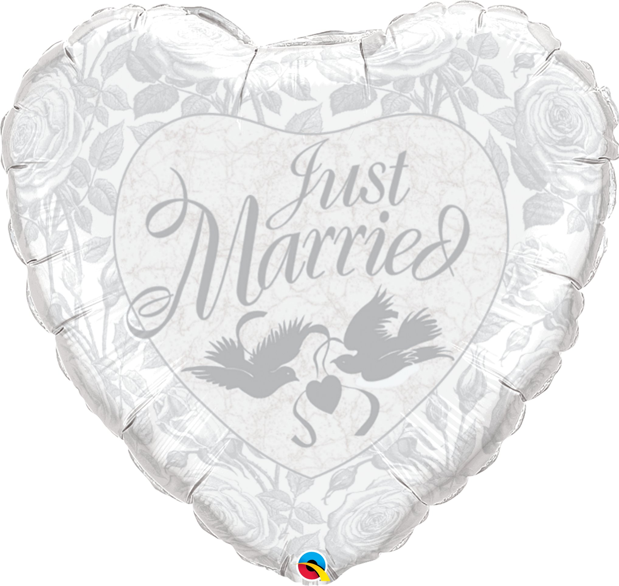 Fóliový balónek ve tvaru srdce s nápisem ,,Just Married" ve velikosti 91cm.
