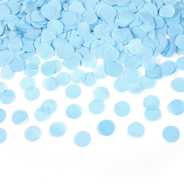 Konfetové dělo se světle modrými konfetami z hedvábného papíru.