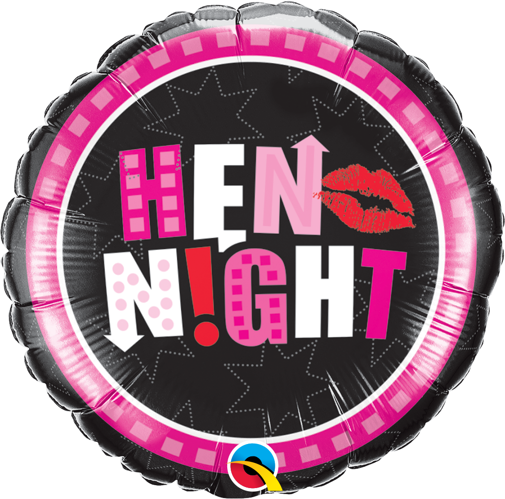 Foliový balónek ve tvaru kruhu v růžovočerné barvě a potiskem Hen night - Rozlučka se svobodou!