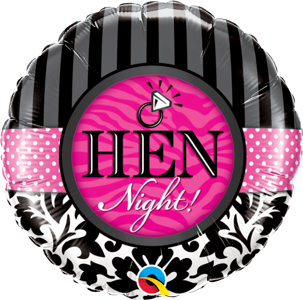 Foliový balónek ve tvaru kruhu v růžovo-černé barvě s potiskem "Dámská noc".