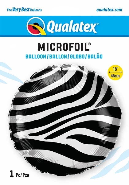 Foliový balónek ve tvaru kruhu s motivem zebra.