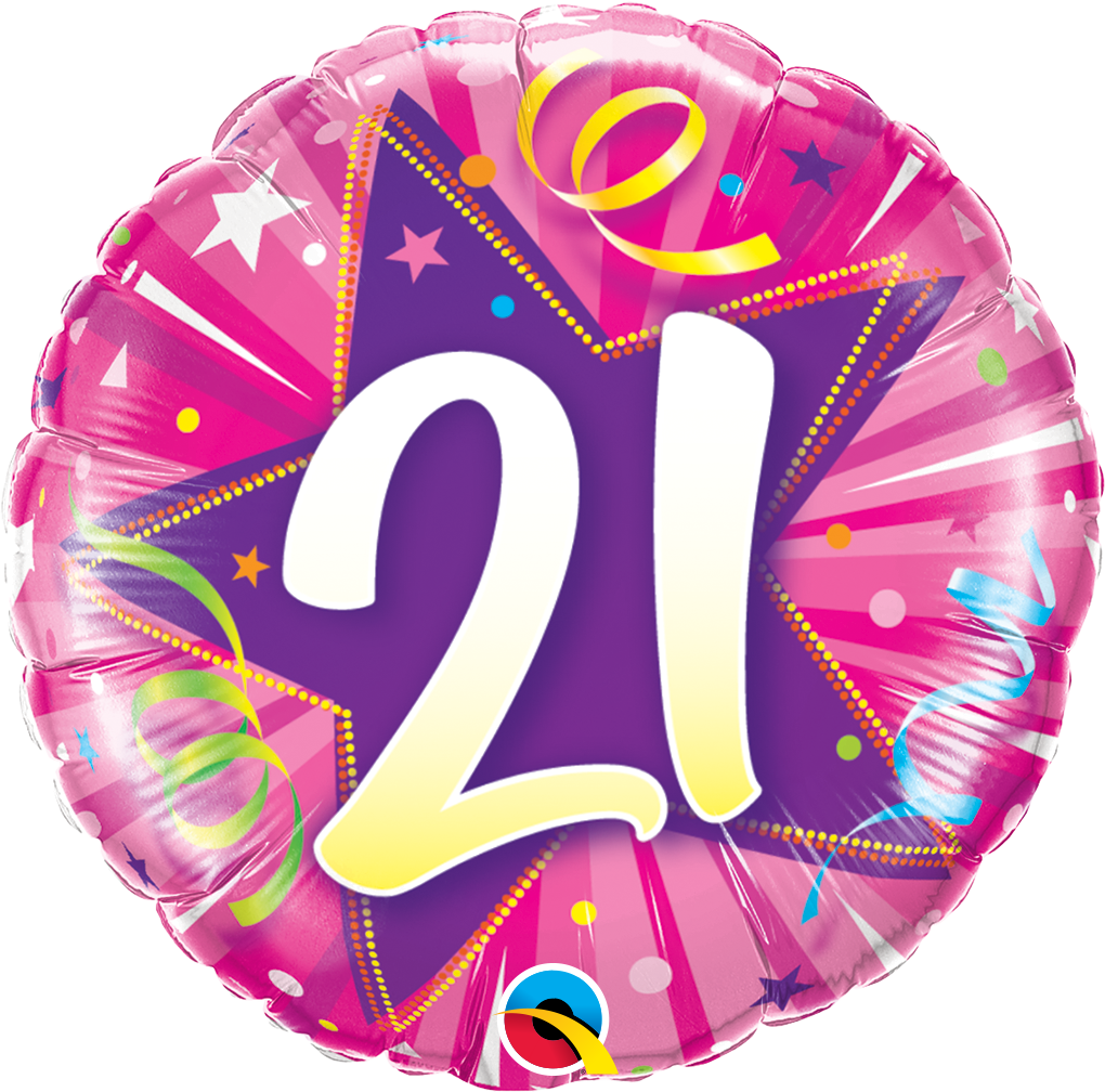 Foliový balónek ve tvaru kruhu v růžové barvě s číslem 21.