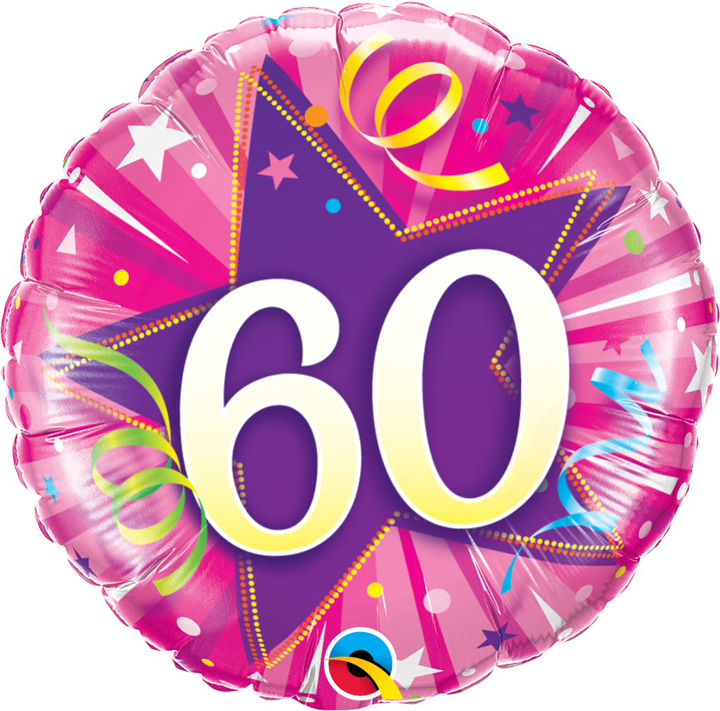 Foliový balónek ve tvaru kruhu v růžové barvě s číslem 60.