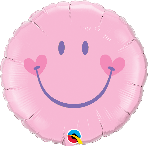 Foliový balónek ve tvaru kruhu s úsměvem v růžové barvě.