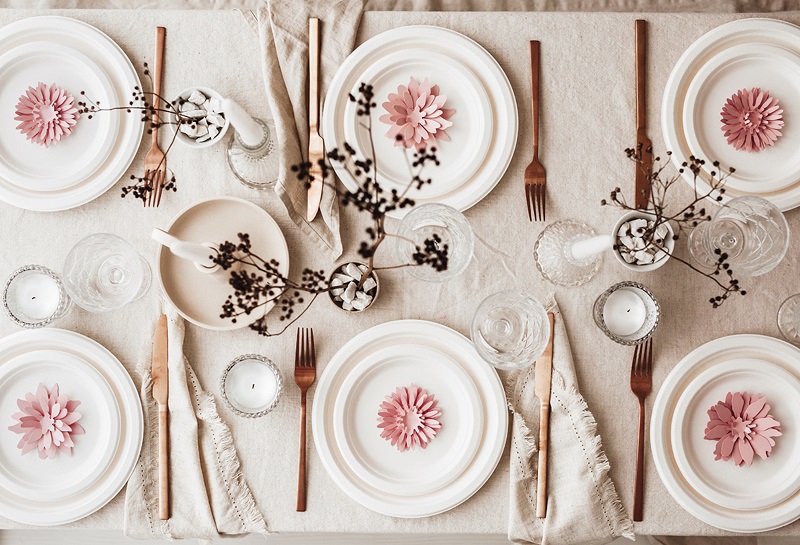 Papírové dekorační květiny v pudrově růžové barvě, "udělej si sám".