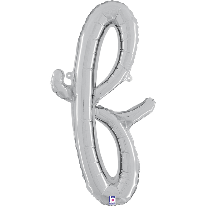 PÍSMENO psací F STŘÍBRNÉ (35 cm) fóliový balónek nafukovací