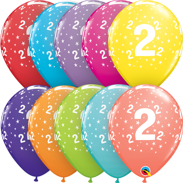 6ks pastelových narozeninových balónků v mixu barev s potiskem číslice 2 o průměru 28cm.