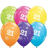 6ks pastelových narozeninových balónků v mixu barev s potiskem číslice 21 o průměru 28cm.