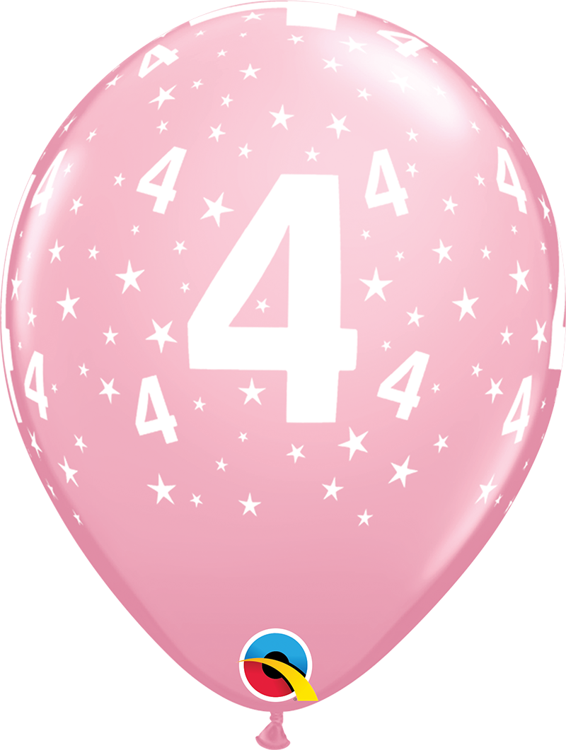 6ks růžových pastelových balónků s potiskem čísla 4 o průměru 28cm.
