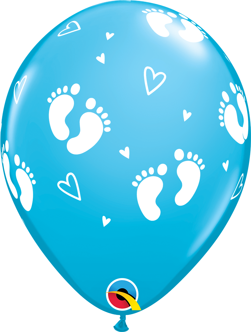 6ks modrých pastelových balónků s potiskem dětských kroků o průměru 28cm.