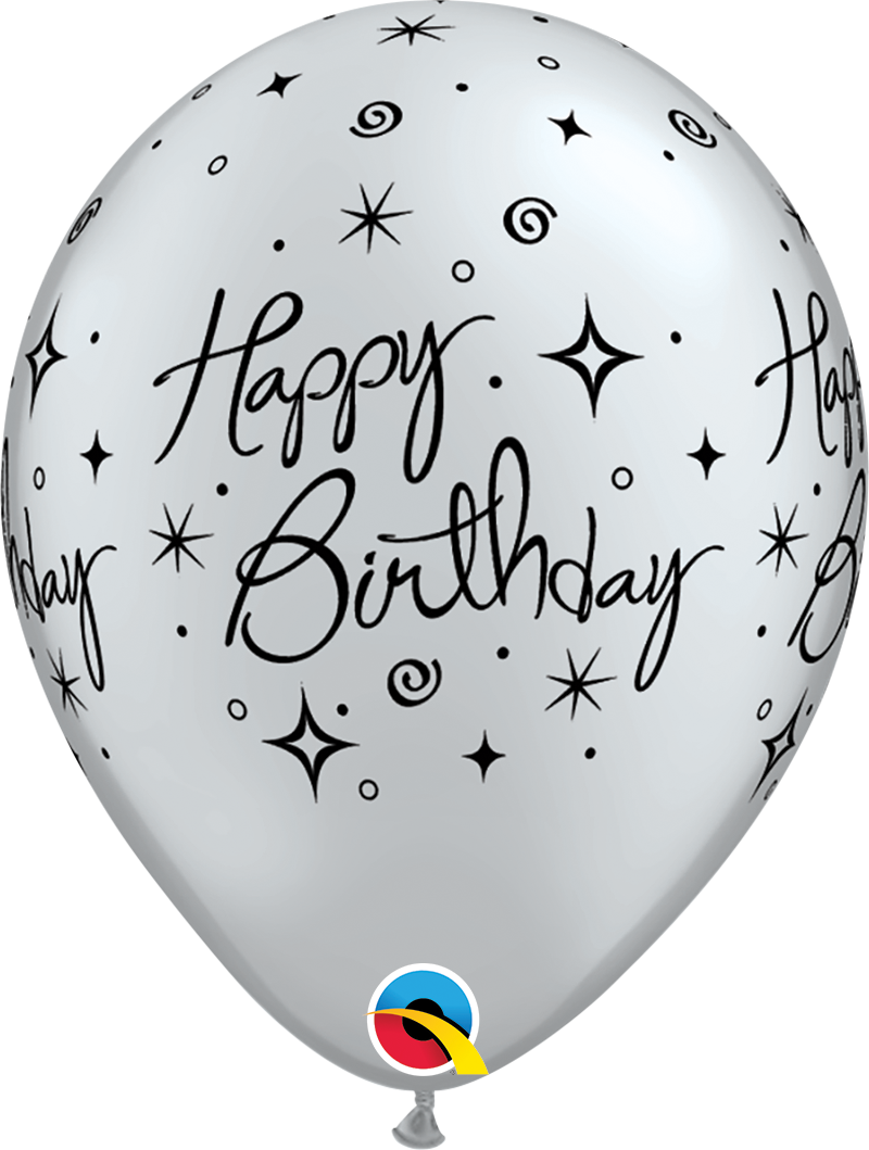 6ks stříbrných balónků v mixu barev s potiskem Happy birthday o průměru 28cm.