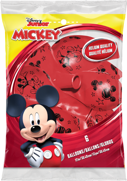 6ks pastelových balónků v červené barvě s potiskem Mickey Mouse z Disney pohádek o průměru 30cm.