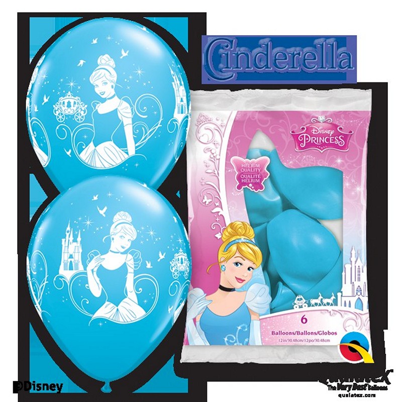 6ks pastelových balónků v modré barvě s potiskem Popelky z Disney pohádek o průměru 30cm.