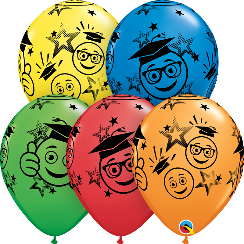 25ks pastelových balónků v mixu barev s potiskem usměvavých obličejů s maturitní a promoční tématikou o průměru 28cm.