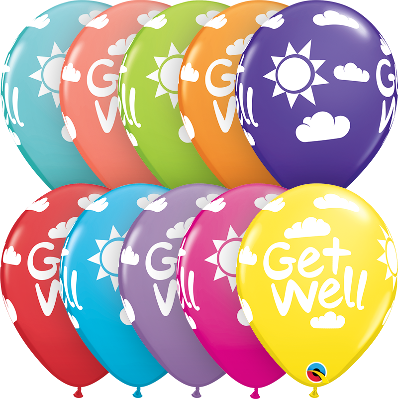 6ks pastelových balónků v mixu barev s potiskem "Uzdrav se" o průměru 28cm.
