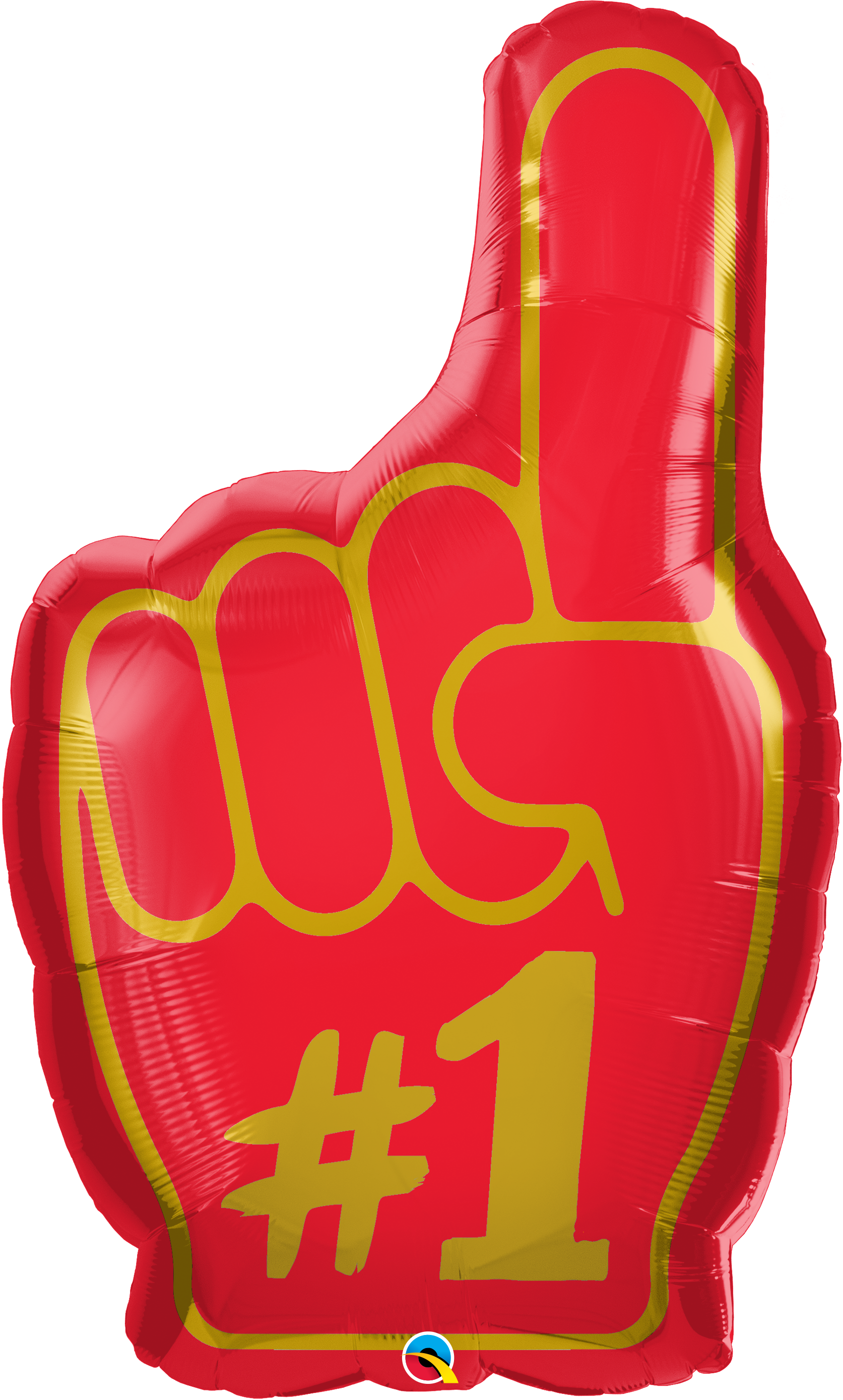 Foliový balónek ve tvaru ruky v červené barvě se zlatým nápisem #1.