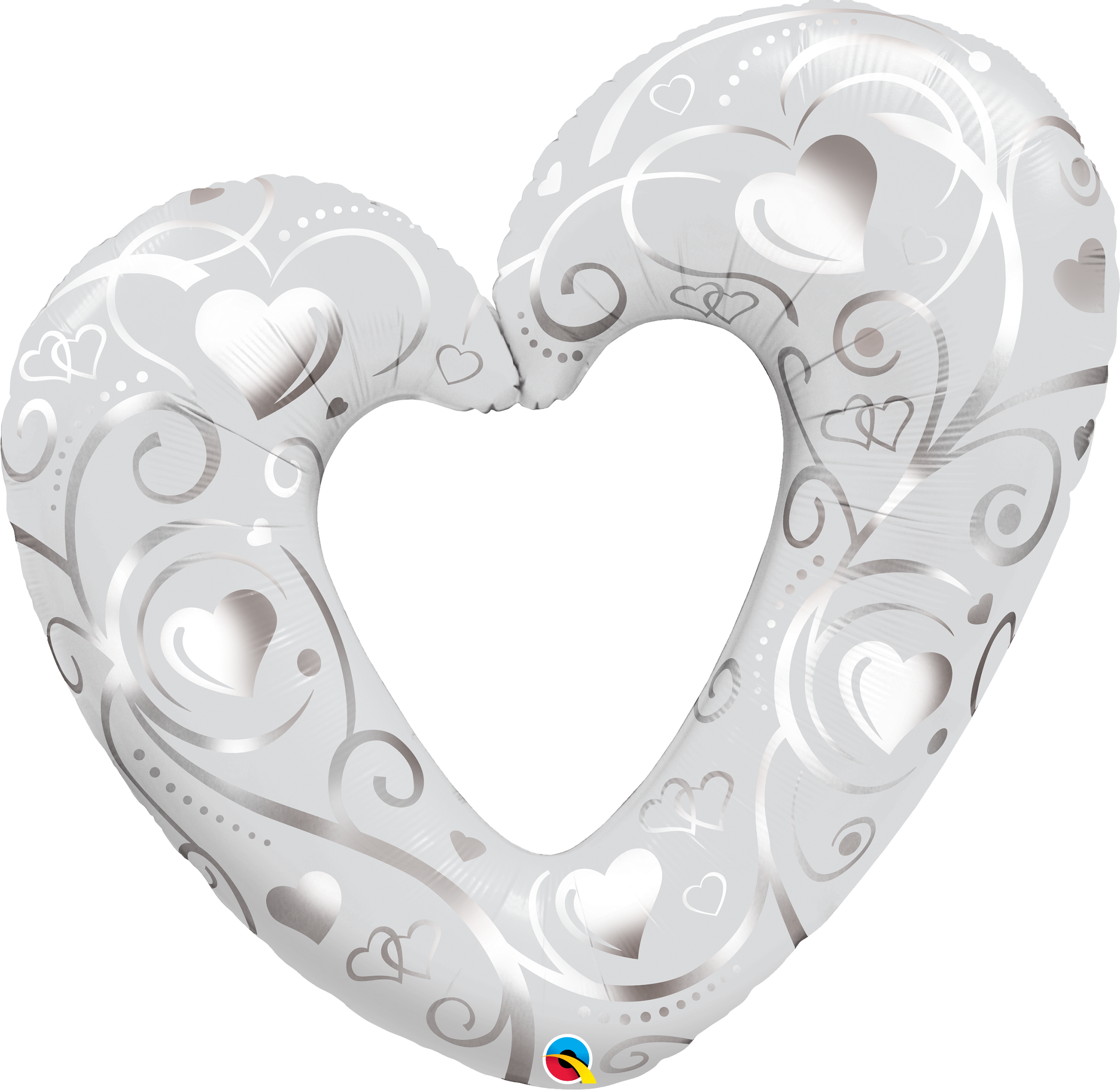 Foliový balónek ve tvaru srdce v bílé barvě se stříbrnými detaily.