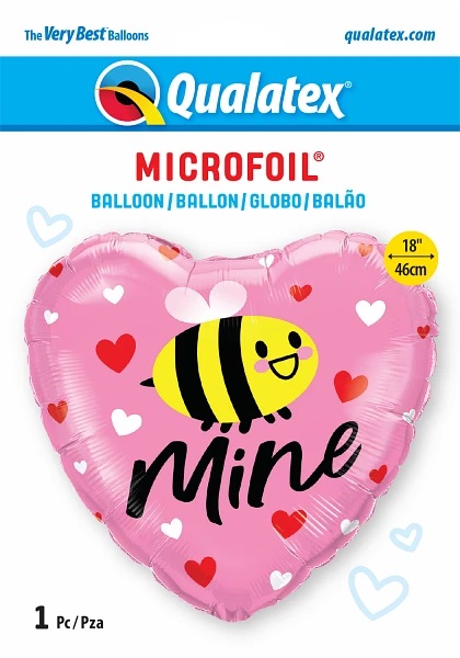 Foliový balónek ve tvaru srdce v růžov barvě s potiskem Bee mine.