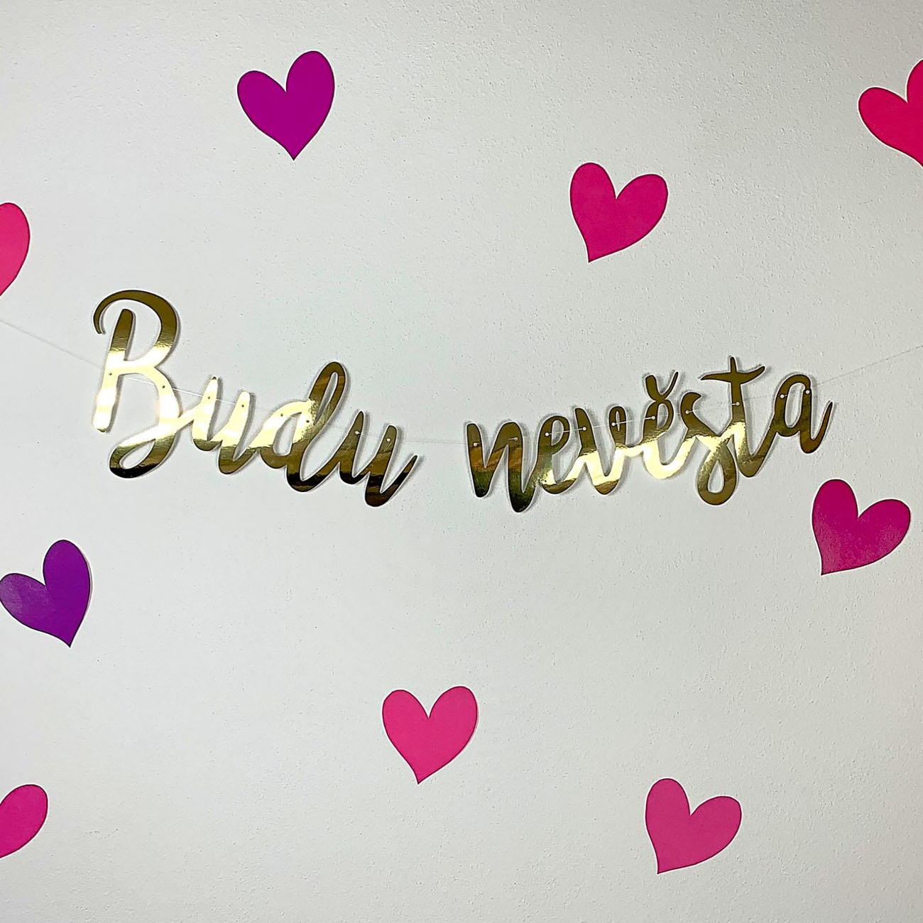 Papírová girlanda Budu nevěsta je ve zlatém, lesklém provedení.