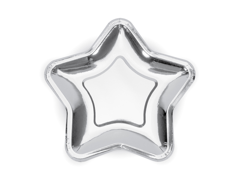 Papírové talíře Hvězdy ve stříbrné metalické barvě.