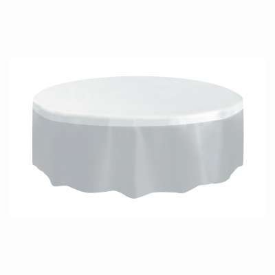 Foliový ubrus v průhledné barvě o průměru 214 cm.