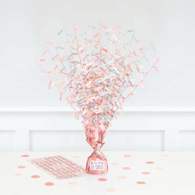 Balónkové závaží v rosegold barvě s nápisem Happy Birthday.
